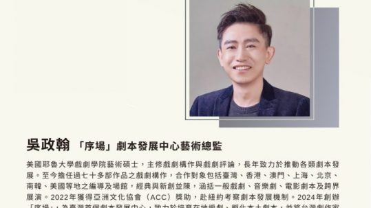 本活動為跨域所辦理表演藝術史學課堂講座邀請「序場」劇本發展中...