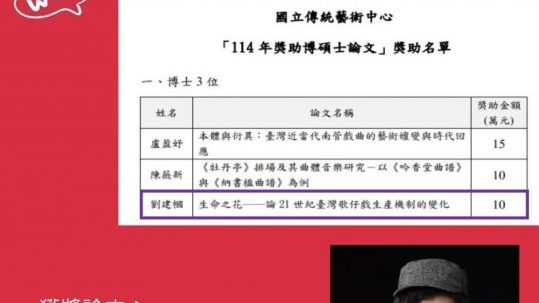 獲獎論文:《生命之花──論21世紀臺灣歌仔戲生產機制的變化》...