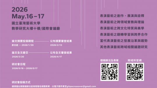 音樂、舞蹈、戲劇、戲曲、民俗技藝等,表演藝術跨域議題觀察、論述與批判